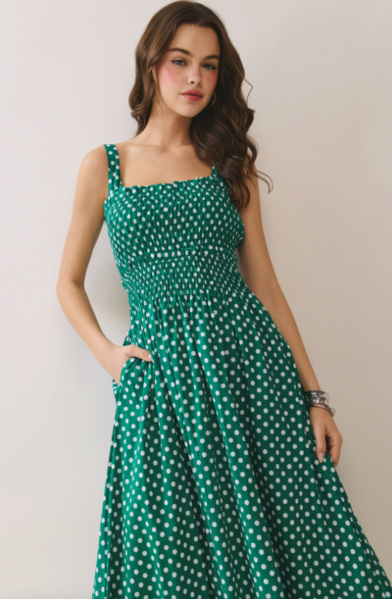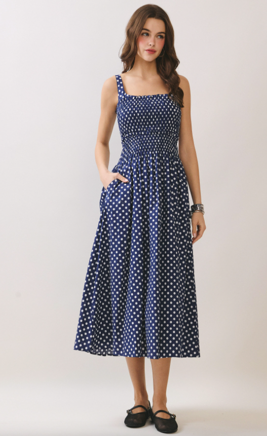 Estella Polka Dot Smocked Midi Dress