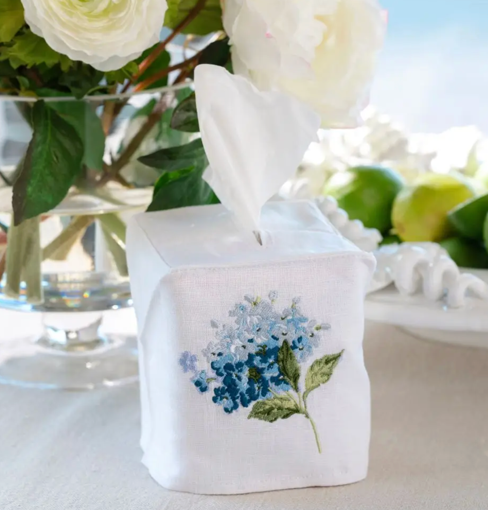 Hydrangea Linen Tissue Box Cover