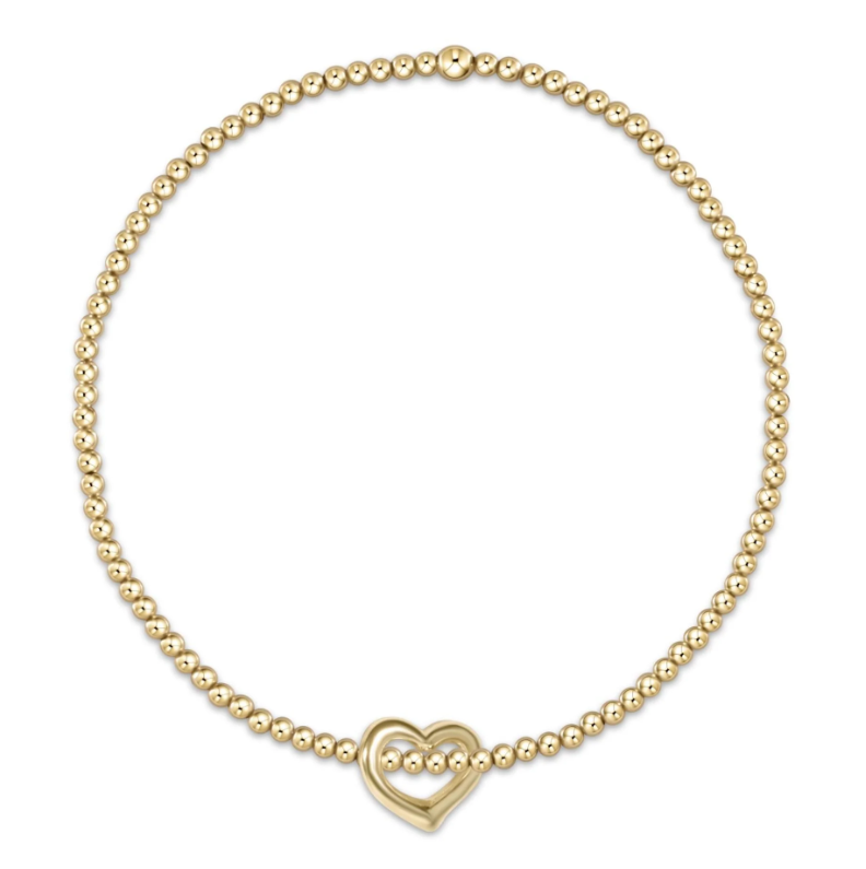 E Newton Classic Gold Bead Bracelet - Love Heart Charm