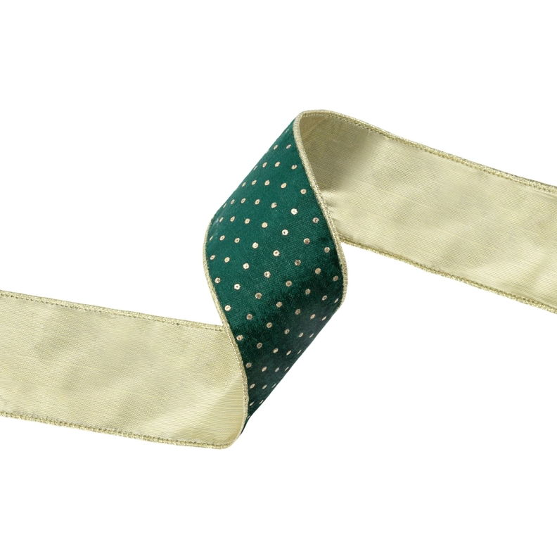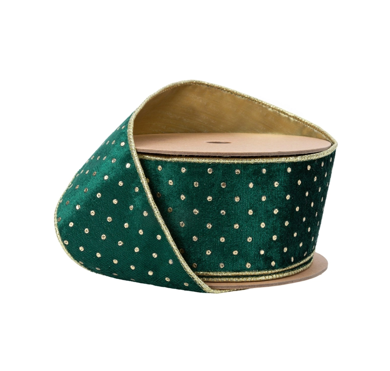 - 10yds Dark Green Gold Dot Wired Ribbon
