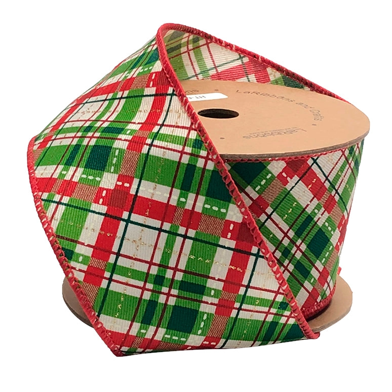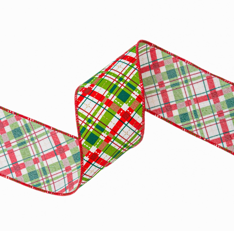 Classic Holiday Plaid: Our 2 1/2" Wired Ribbon features a timeless holiday plaid design in a festive combination of white, red, and green. Each roll comes with 10 yards of ribbon, providing ample material to accommodate various decorating needs and creative endeavors.