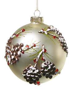 4" PINECONE EMBELLISHED CHAMPAGNE ORNAMENT