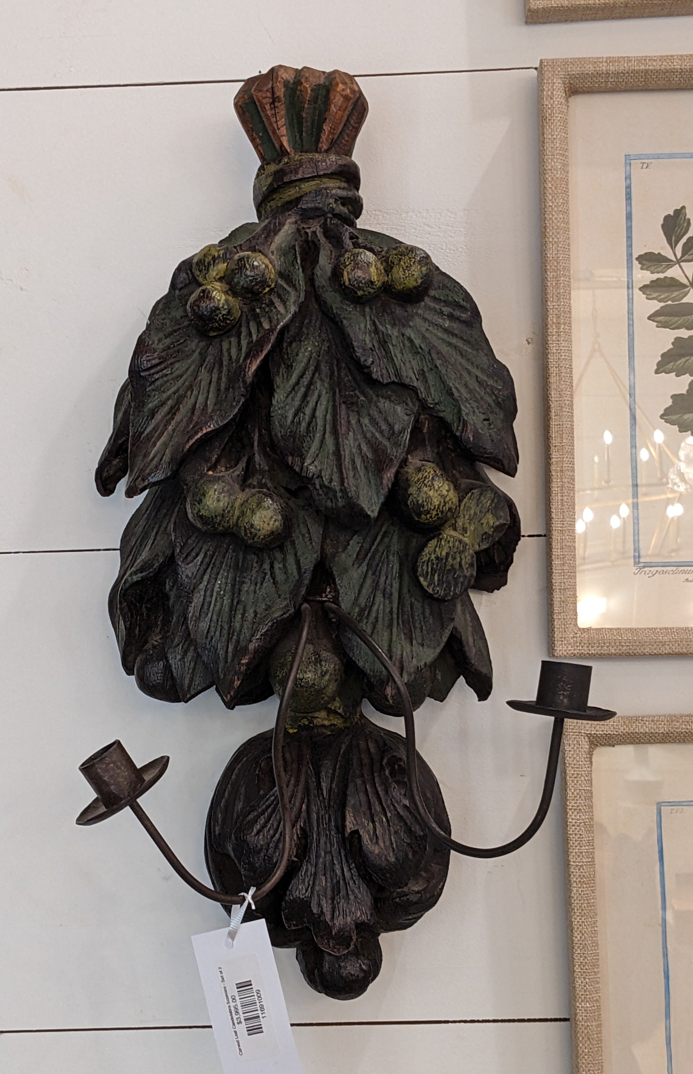 Carved Leaf Candelabra Sconces - Set of 2