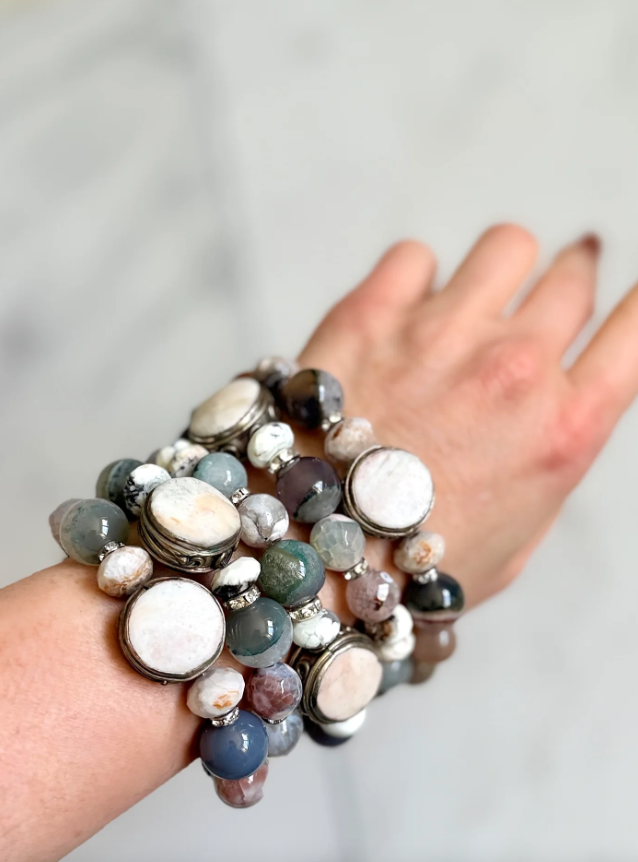 Tibetan Shell Gemstone Stretch Bracelet