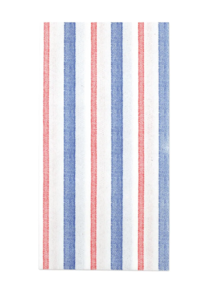 Papersoft Napkins Americana Stripe Napkins are highly absorbent and made of a fibrous material (spunlace) in Italy. An easy grab-and-go gift for the hostess or a fun addition to your last-minute dinner party, these napkins can be dressed up or down.