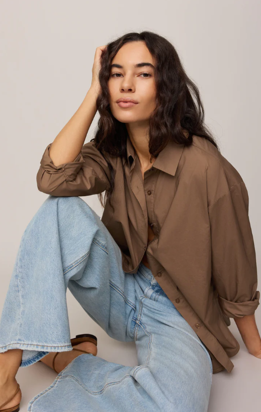 This poplin button-up brings structure to your wardrobe with a relaxed fit and lightweight, breathable cotton feel. The collared neckline and long sleeves make it ideal for dressing up or styling open over tanks.