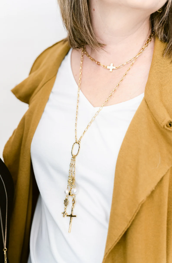 Susan Shaw Jerusalem Double Cross Chain Necklace