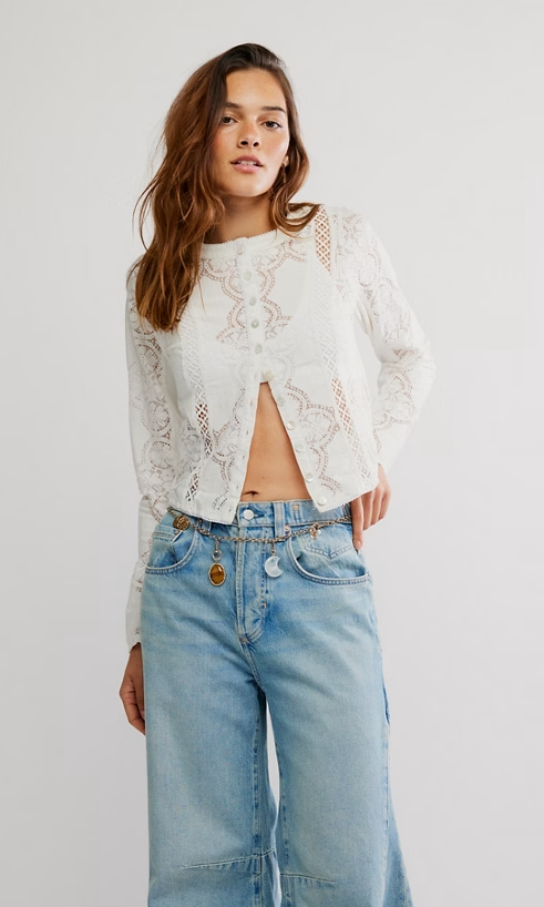 Free People Jae Sheer Lace Knit Long Sleeve Top