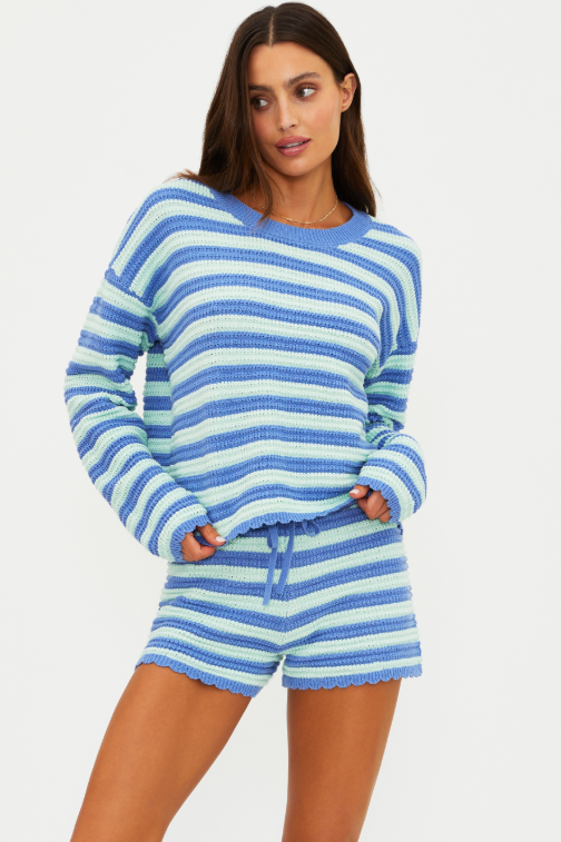 Beach Riot Beach Sweater - Sapphire Sea Stripe