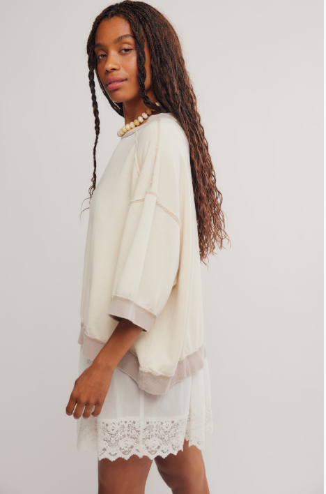 Laidback to the max, this effortless pullover from We The Free is featured in a boxy, ¾ sleeve style in a washed fleece fabrication for the perfect lived-in look.