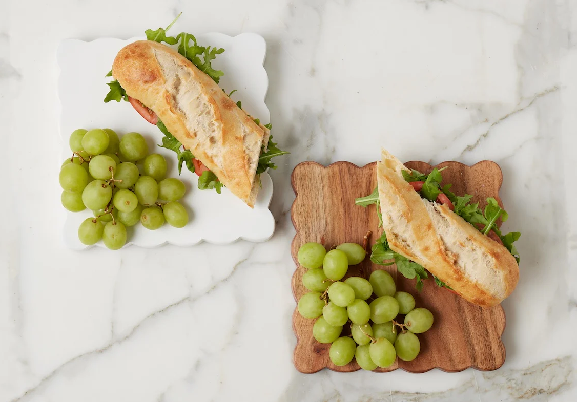 Square Scalloped Cheese Board & Markers Set