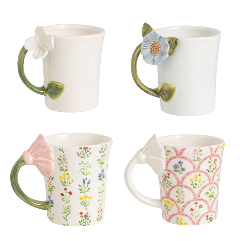 Stoneware mug features hand-painted stoneware flower attachment with life-like texture.
