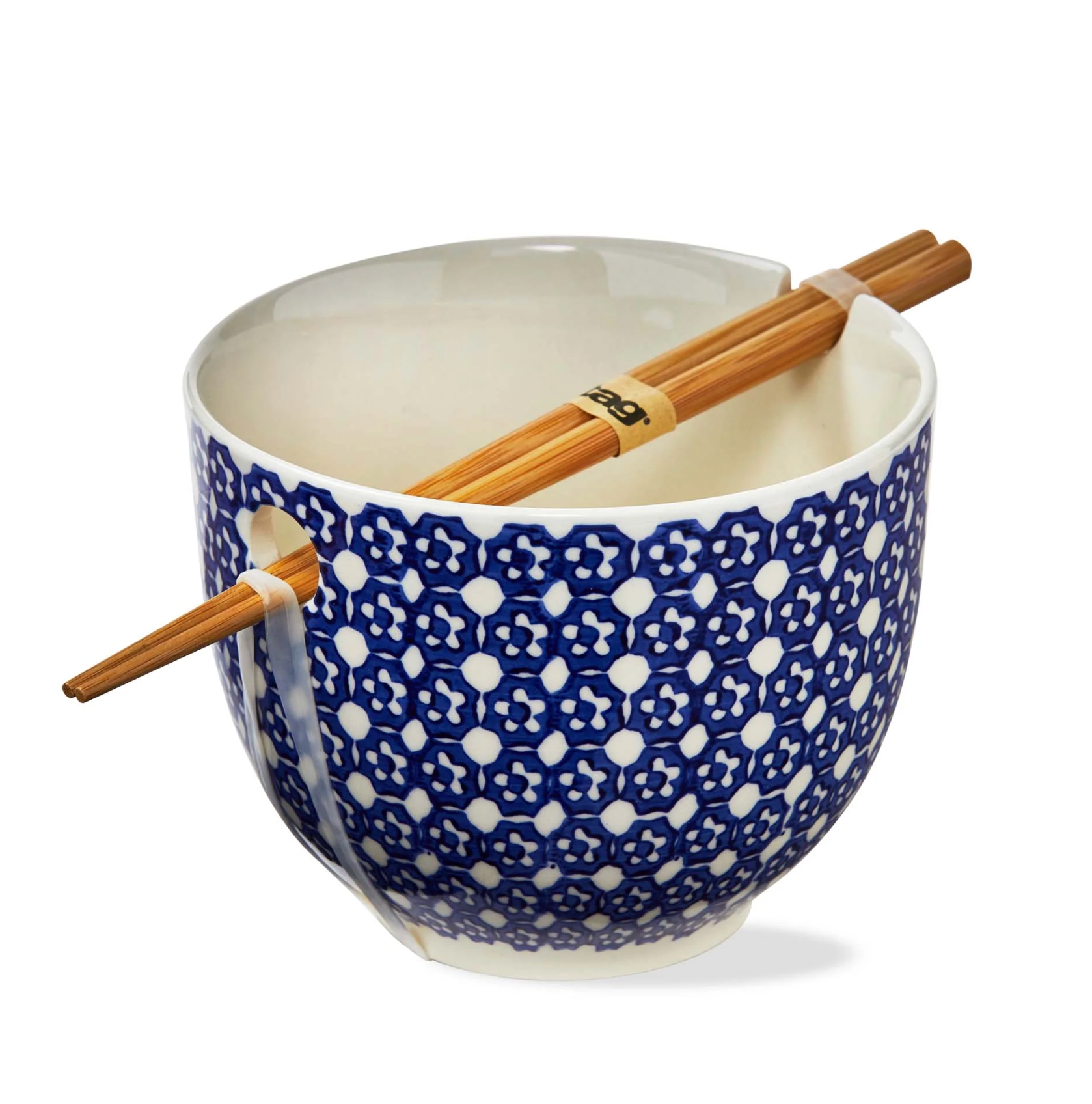 Bring a touch of lisbon's charm to your table with this noodle bowl. made from indigo blue stoneware, each bowl is adorned with a beautiful design created using wax resist and hand painting techniques.