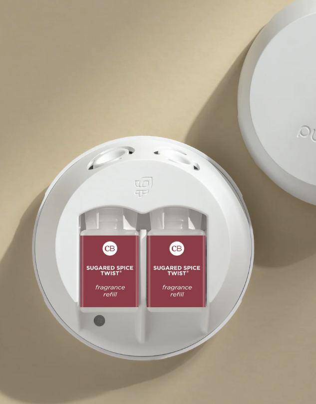 Enjoy Sugared Spice Twist in your Pura Smart Home Diffuser. This refill delivers a luxe balance of sugared citrus, black currant, cinnamon, and brown sugar, filling your home with a polished take on seasonal spice. Perfect for creating a warm, inviting atmosphere with effortless fragrance control.