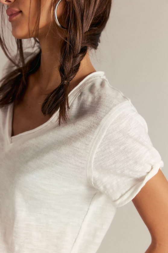 Perfect for layering, this short-sleeved tee from We The Free is featured in a boxy cut and a V-neckline for endless outfitting potential.