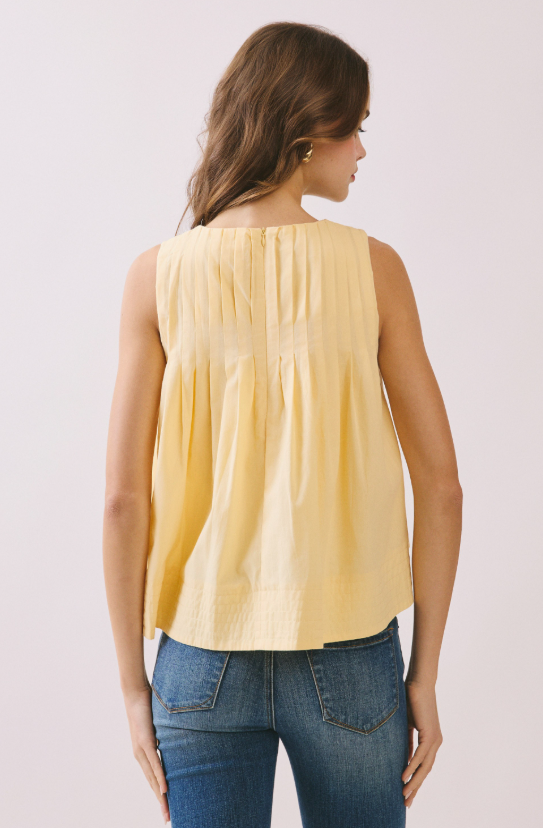 High-low sleeveless top with pleated detailing and a concealed back zipper.