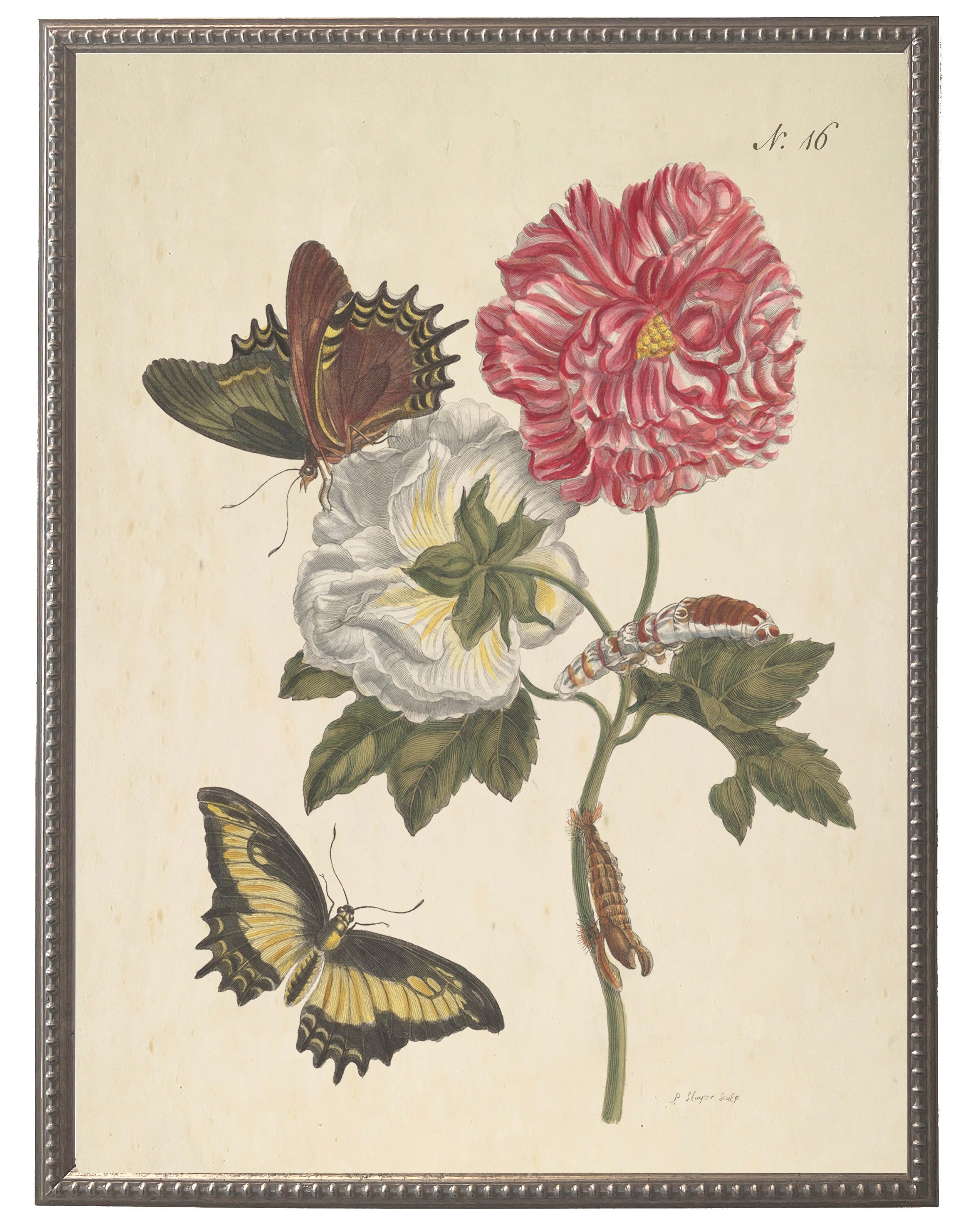 Vintage butterflies and flowers bookplate on a distressed background matted in a cream mat